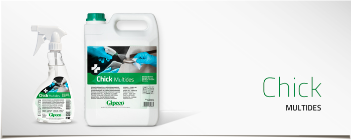 Chick Multides har förutom desinficerande effekt även rengörande effekt och sparar därför arbetsmoment. Har ett brett desinficerande register och en mycket god rengöringsförmåga. Användarvänlig och luktfri. Lätt att applicera med spray eller fogger. Ej brandfarlig.