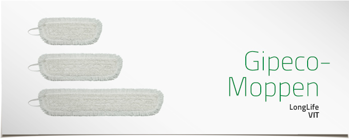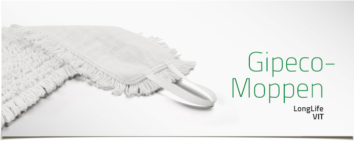 En enormt slitstark fuktmopp för effektiv djuprengöring. Mycket hög materialkvalité. Passar alla städsystem. Materialkompositionen och den unika ögelkonstruktionen ger moppen en överlägsen smutsupptagning och fuktabsorption. Fördelar vätskan jämt över hela städytan. Gipeco-Moppen är även utmärkt till polishutläggning.