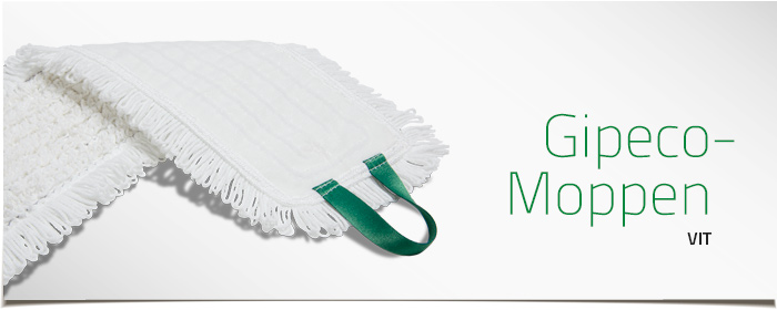 En enormt slitstark fuktmopp för effektiv djuprengöring. Mycket hög materialkvalité. Passar alla städsystem. Materialkompositionen och den unika ögelkonstruktionen ger moppen en överlägsen smutsupptagning och fuktabsorption. Fördelar vätskan jämt över hela städytan. Rengör effektivt även utan kemikalier. Gipeco-Moppen är även utmärkt till polishutläggning.