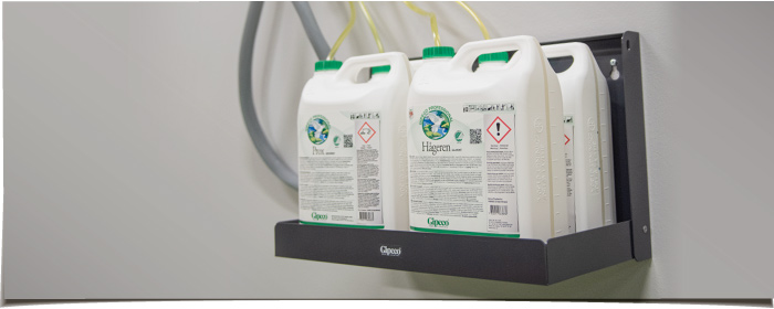 Avsett för dunkar med t.ex. rengörings-, disk-, tvätt- och impregneringsmedel. Underlättar vid städning, förebygger spill och läckage på golv. Gör att dunkar placeras på en ergonomisk höjd. Plats för 4 st 5 liters dunkar eller 2 st 10 liters dunkar.
